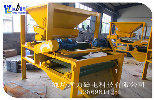 永磁幹式筒式磁選機,距離筒表麵越遠,磁力衰減得越厲害,料流過厚會造成磁性顆粒與非磁性顆粒相互夾雜,影響礦石的分選效果,若能實現顆粒在皮帶上單層分布最為理想。要求幹選前增加料層平料器,盡量利用皮帶的有效寬度,使幹選料層薄而均勻,保證幹選效果。